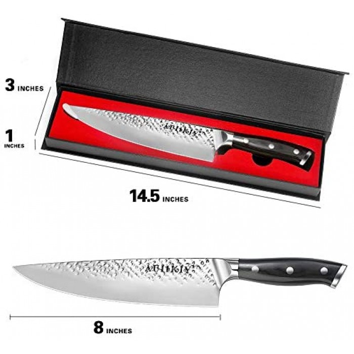 • ?Exquisite Gift Box? This 8 inch chef knife with a exquisite Gift Box is very suitable as a gift for mom, This is also a good choice as a gift for women, gift for dad, gift for wife, gift for grandma , such as Mother's Day, Father's Day, Thanksgiving Day, Black Friday, Christmas day, New Year, Easter Day, Halloween, birthday, etc, This is a great gift ideas